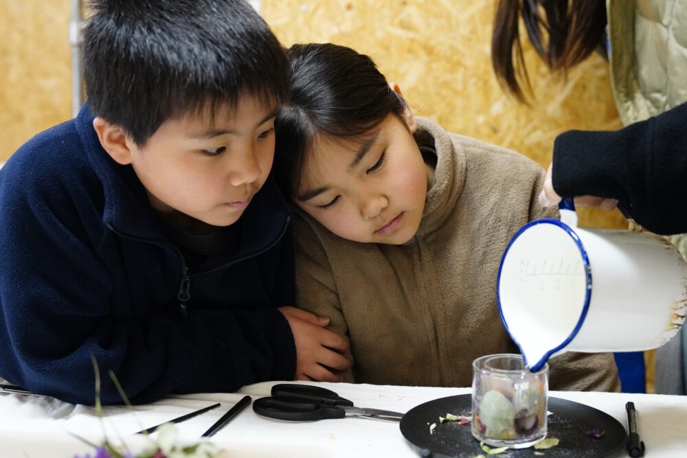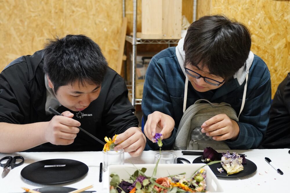ワークショップに参加した地元の輪島市立東陽小中学校の生徒たちからは「こんなふうに花びらに触れることがなかったので楽しい」「なんだかおいしそうに見えてきた」などといった言葉が聞かれたほか、「どんなアーティストがどこで開催したライブのお花なのかな? 想像するのも楽しい」とつぶやきながら作業をする子どももいるなど、東京とのつながりだけでなく、日頃から見聞きすることのあるアーティストとの接点も感じることができたようで、本取り組みの目的でもあった「内」と「外」をつなぐ機会となった。